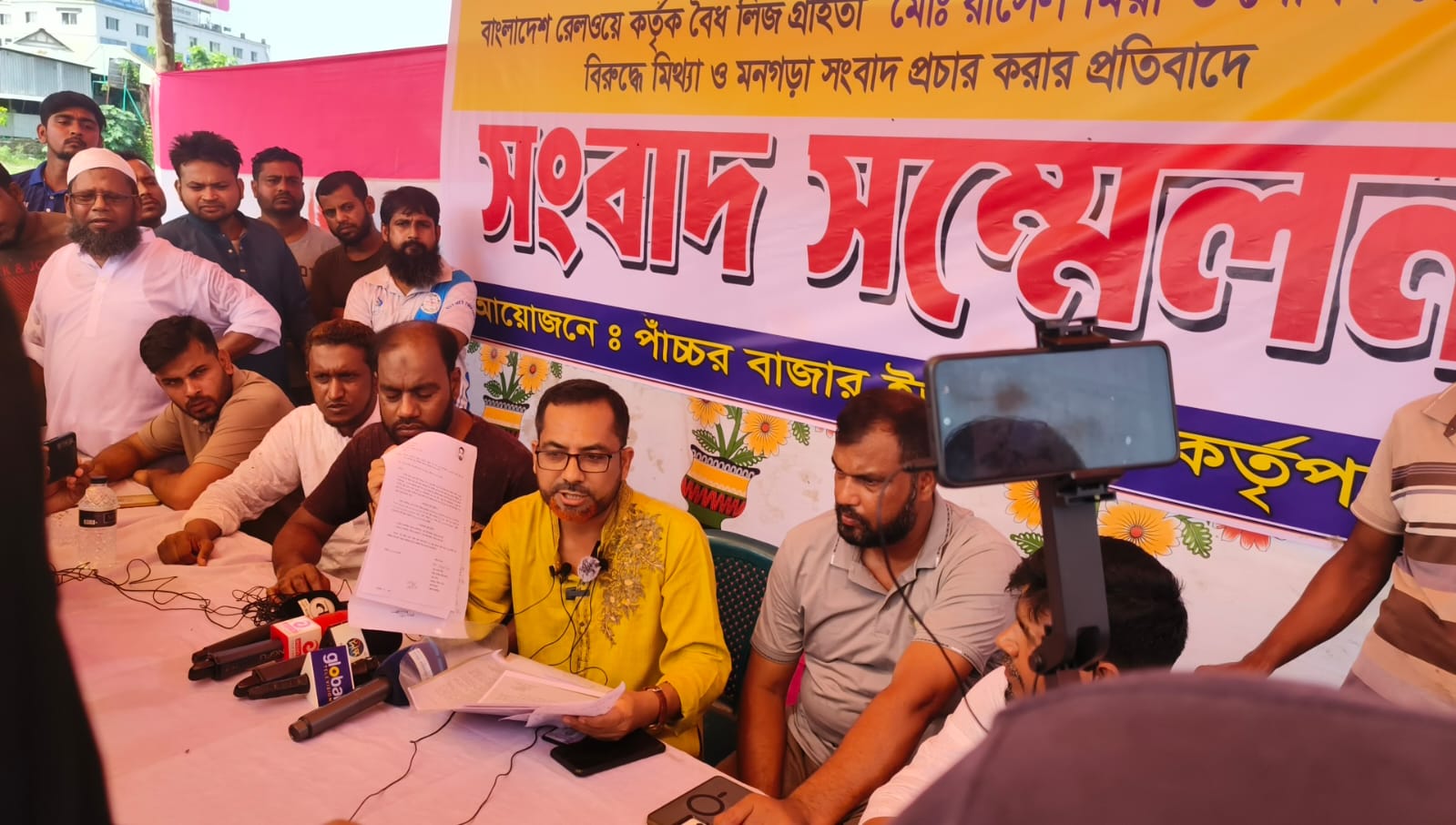 Reading out a written statement, leaseholder Md. Russel Mia said, “We have been operating the lease of Pachar Bazar for a long time after receiving it legally from Bangladesh Railway. Yet certain vested groups are spreading baseless and false information against us, creating confusion among the public and damaging our reputation.”