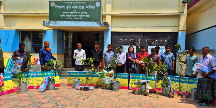 রাজশাহী:: রাজশাহীর দুর্গাপুরে অনাবাদি পতিত জমি ও বসত বাড়ির আঙ্গিনায় পারিবারিক পুষ্টিবাগান স্থাপন প্রকল্প (২ য় সংশোধিত) প্রকল্পের আওতায় ২০ জন কৃষকের মাঝে বিভিন্ন সবজির বীজ, গাছের চারা, ভার্মি কম্পোস্ট, জৈব সার, নেট, ঝাঁজরি,বীজ সংরক্ষণের কৌটা সরবরাহ করা হয়েছে।