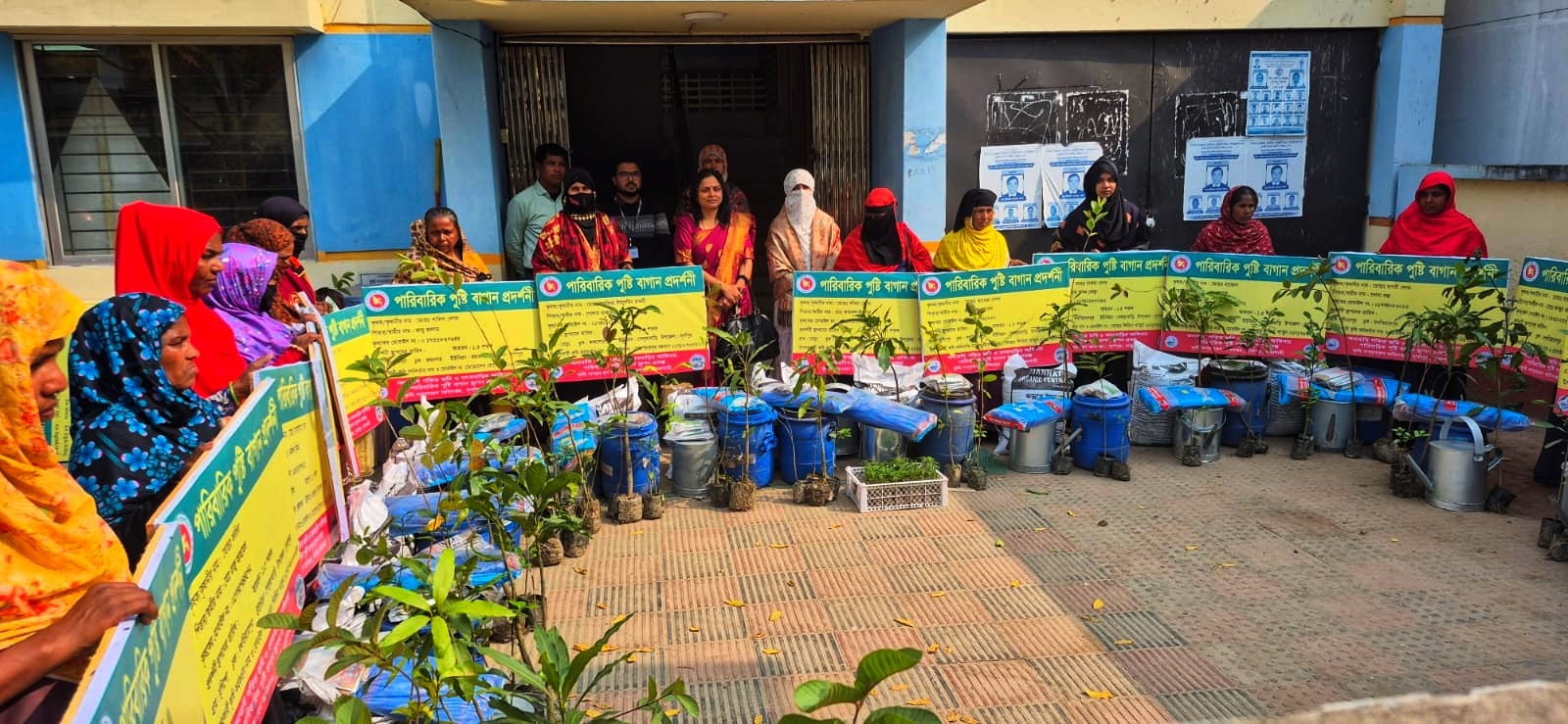 দুর্গাপুরে পারিবারিক পুষ্টি বাগান করতে চারা উপকরণ বিতরণ