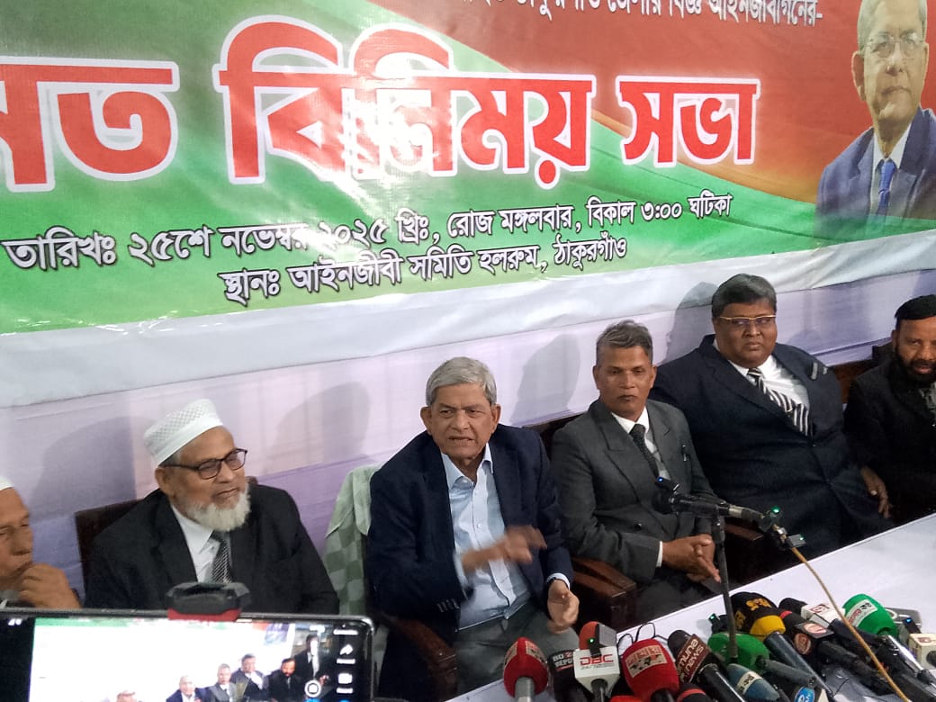 গতকাল মঙ্গলবার (২৫ নভেম্বর) বিকেলে ঠাকুরগাঁও আইনজীবী সমিতির সদস্যদের সঙ্গে মতবিনিময় সভায় সাংবাদিকদের প্রশ্নের জবাবে তিনি এমন মন্তব্য করেন।