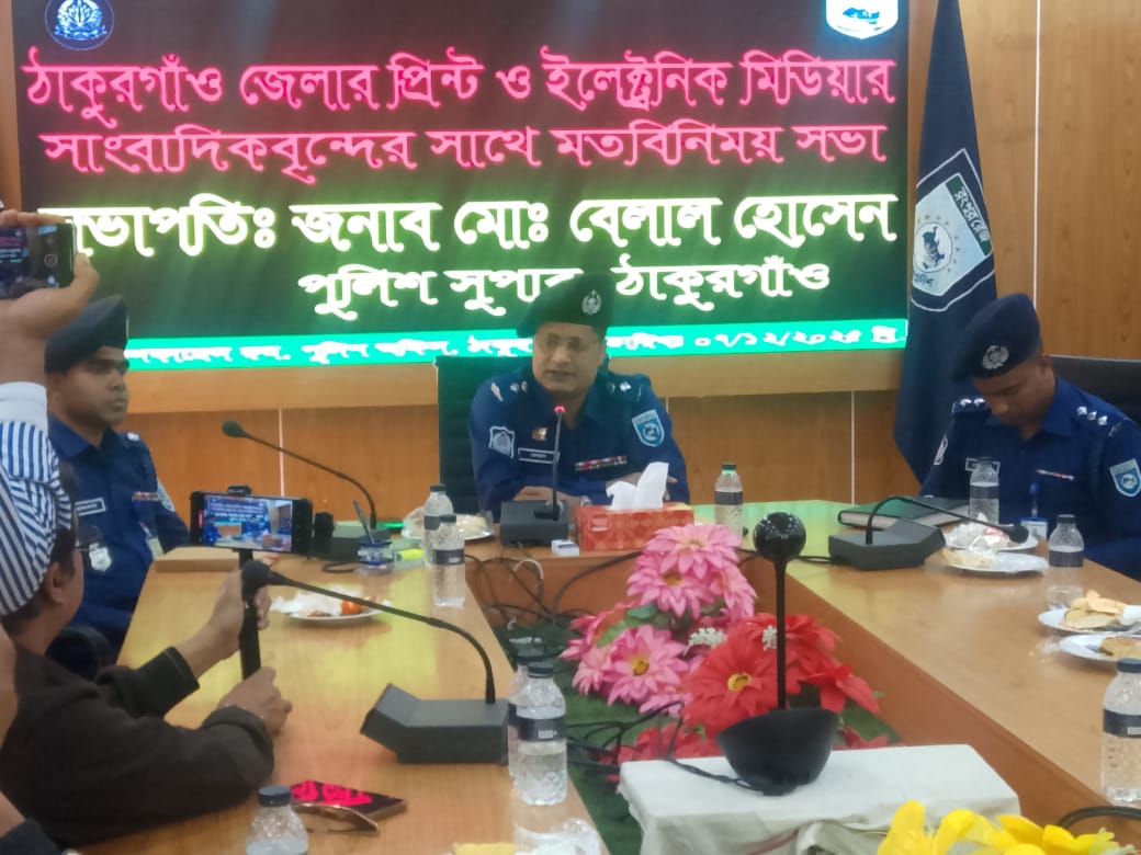 ঠাকুরগাঁও:: ঠাকুরগাঁওয়ে নবাগত পুলিশ সুপার বেলাল হোসেনের সাথে স্থানীয় সাংবাদিকদের মতবিনিময় সভা অনুষ্ঠিত হয়েছে।