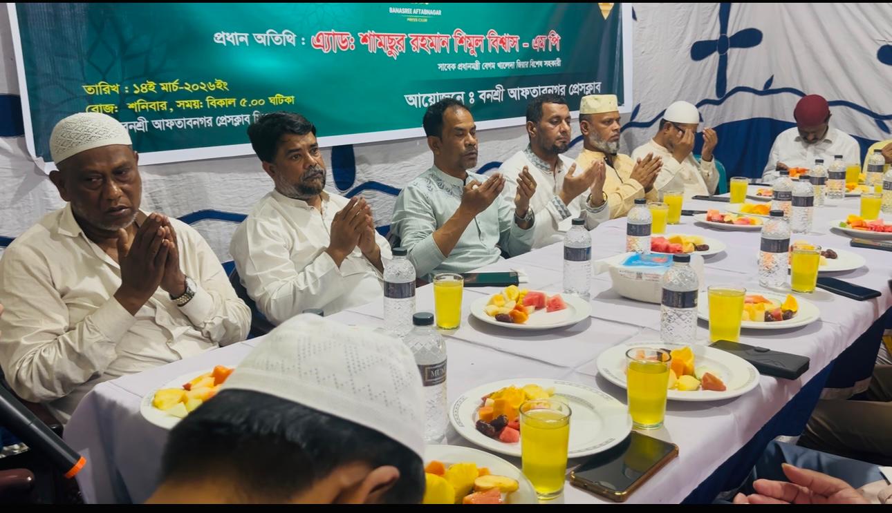 শনিবার (১৪ মার্চ) বিকেলে রাজধানীর বনশ্রী প্রেসক্লাব মিলনায়তনে এই ইফতার মাহফিলের আয়োজন করা হয়। অনুষ্ঠানে বিভিন্ন শ্রেণি-পেশার মানুষ, রাজনৈতিক নেতৃবৃন্দ, সাংবাদিক এবং স্থানীয় গণ্যমান্য ব্যক্তিবর্গ অংশগ্রহণ করেন। অনুষ্ঠানে প্রধান অতিথি হিসেবে সাবেক প্রধানমন্ত্রীর একান্ত সচিব ও বেগম খালেদা জিয়ার বিশেষ সহকারী অ্যাডভোকেট শামছুর রহমান শিমুল বিশ্বাস, এমপি ভিডিও কলে বক্তব্য রাখেন। তিনি বলেন, রমজান মাস আত্মশুদ্ধি, সহমর্মিতা ও মানবিক মূল্যবোধ জাগ্রত করার মাস। সমাজের সুবিধাবঞ্চিত মানুষদের পাশে দাঁড়ানোই এই পবিত্র মাসের প্রকৃত শিক্ষা।