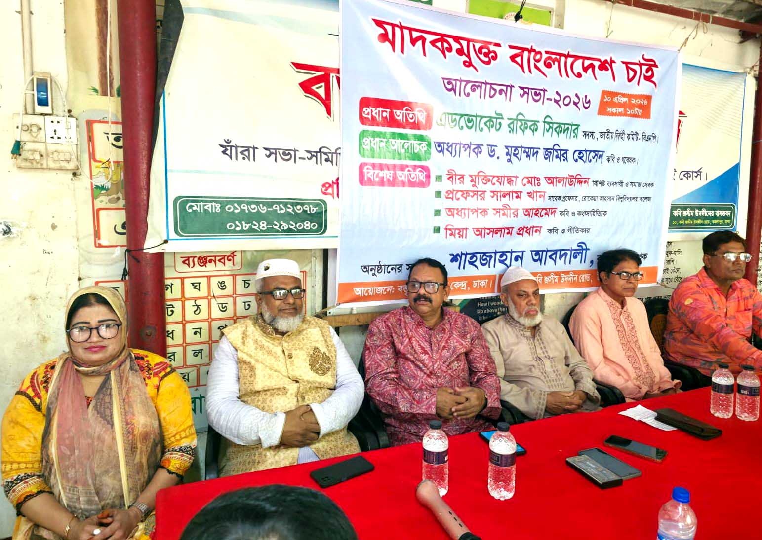 ​শিবচর(মাদারীপুর)::  ​বসন্তের বিদায়ঘণ্টা আর গ্রীষ্মের তপ্ত আবাহনের সন্ধিক্ষণে,এক অনন্য সাহিত্যিক আবহে ধ্বনিত হলো মাদকমুক্ত দেশ গড়ার বজ্রশপথ। রাজধানীর কমলাপুরস্থ পল্লীকবি জসীম উদদীনের সেই স্মৃতিধন্য নিভৃত আঙিনায়, যেখানে একসময় বাংলা সাহিত্যের সোঁদা মাটির ঘ্রাণ মিশে থাকত, সেখানেই তারুণ্যের মেধা রক্ষার অঙ্গীকারে সমবেত হয়েছিলেন দেশবরেণ্য গুণীজন।